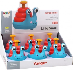 La lumaca su ruote è un giocattolo insolito che diverte con la sua azione interattiva. Dopo aver premuto il pistone, la lumaca si muove velocemente sulla superficie, offrendo tanto divertimento e incoraggiando il bambino all’attività.