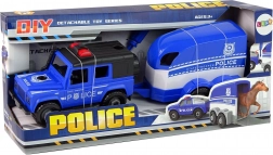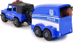 Il set è ideale per i piccoli fan degli interventi di polizia. Il fuoristrada traina in sicurezza il rimorchio per cavallo, dotato di sportello posteriore apribile per un carico e scarico comodi. Grazie alle viti e al cacciavite inclusi, il veicolo può essere smontato e rimontato, sviluppando le competenze e insegnando il pensiero tecnico in modo divertente.