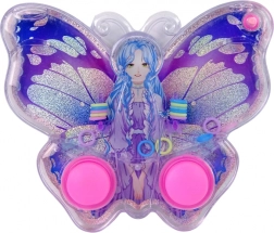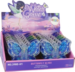 Il giocattolo ad acqua ha la forma di una farfalla con grafica colorata in tre varianti cromatiche.