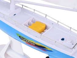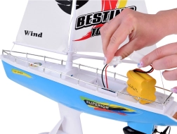 Il radiocomando a volante a 27 MHz è intuitivo e permette di muoversi avanti/indietro e di sterzare in modo fluido a destra e a sinistra. Grazie alla batteria da 7,2 V inclusa e alla ricarica USB, la barca è rapidamente pronta a salpare di nuovo, mentre il supporto è utile per l’asciugatura e l’esposizione del modello.