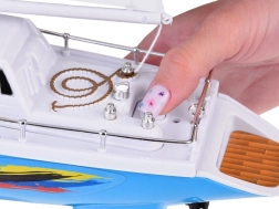 Questa barca a vela radiocomandata unisce un design accattivante a una costruzione funzionale per un divertimento senza pensieri su stagni, piscine o laghetti. Dettagli realistici come il ponte dall’aspetto “in legno”, i corrimano cromati e le vele in tessuto sono completati da una propulsione affidabile con due eliche e da una navigazione stabile grazie alla chiglia pronunciata.