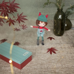 Incontra Ludvik, una simpatica bambola con capelli spettinati castani e un sorriso che illumina il suo volto. Indossa un cappellino con orecchie da lupo e pantaloncini ricamati con un'amanita rossa. La bambola è confezionata in una bellissima scatola regalo.