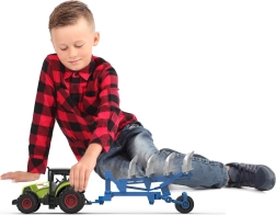La marcia è garantita dal meccanismo a inerzia, quindi il trattore parte facilmente con una leggera spinta. La lunghezza totale del set è di 37 cm, il che assicura stabilità e un controllo agevole per le piccole mani dei bambini. Batterie incluse, così i bambini possono iniziare a giocare subito dopo l’apertura.