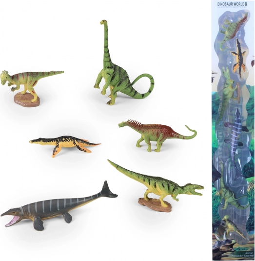 Scopri il mondo preistorico con un set di sei dinosauri realizzati con dettagli accurati. Le figure sono realizzate in gomma dura di qualità e, grazie alle dimensioni compatte circa 6–10 cm, sono perfette per giocare a casa o in viaggio. La pratica scatola facilita la conservazione e il trasporto.