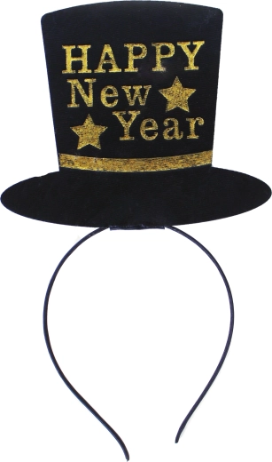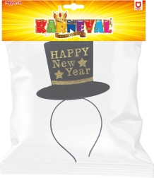 Fascia nera con cappellino, arricchita dalla scritta dorata HAPPY New Year: un accessorio sensazionale per la festa o il party di benvenuto al Nuovo Anno!