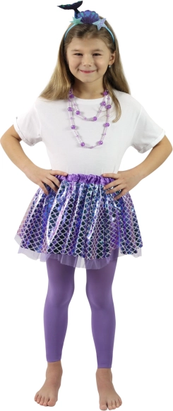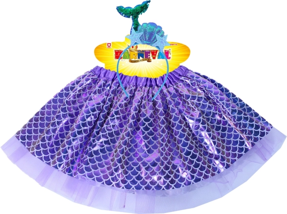 Il costume è completato da un cerchietto alla moda con motivo ittico, ideale per spettacoli di danza, carnevali o per il gioco quotidiano a fare la sirena. La lunghezza della gonna è di circa 28 cm, per garantire comfort e libertà di movimento.
