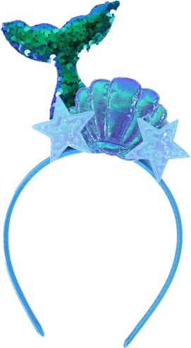 Il cerchietto decorato con una coda di sirena brillante, conchiglia e stelle marine dona a ogni outfit un look unico.