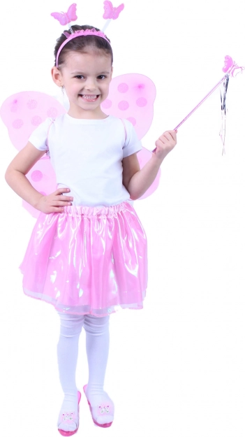 Ali rosa con motivo a pois che donano al costume un tocco magico; sono leggere e comode per i bambini.