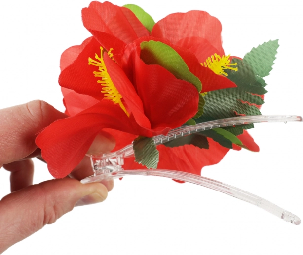 Questo fermaglio floreale per capelli porta l'esotico direttamente nel tuo stile. Con i suoi fiori rosso vivace e foglie verdi, ti trasformerai nella regina di ogni festa, sia che si tratti di una festa in spiaggia, un party hawaiano o una celebrazione a bordo piscina.