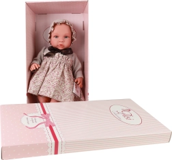 Scopri il fascino della bambola realistica ASI Martina 46 cm con corpo morbido in tessuto e arti in vinile. La bambola ha occhi acrilici blu con ciglia applicate, attacco articolato di braccia e gambe per un miglior posizionamento ed è vestita con un elegante abitino con chiusura a strappo. Prodotta secondo la tradizionale artigianalità spagnola, confezionata in scatola regalo, conforme alle norme CE.
