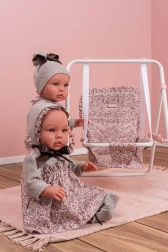 Martina ha un aspetto delicato senza capelli, occhi acrilici blu fissi e ciglia applicate. L’outfit comprende un grazioso abitino con chiusura a strappo sul retro, cuffietta con laccetti e morbide scarpine – un set ideale per il gioco quotidiano e come regalo. Il marchio familiare ASI dalla Spagna si dedica da oltre 50 anni a una produzione artigianale accurata: alle sue bambole non mancano attenzione ai dettagli, qualità e sicurezza.