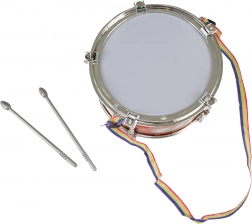 Il tamburo per bambini con bacchette è un ottimo accessorio per ogni giovane musicista. Con una tracolla colorata e due bacchette, diventa uno strumento musicale ideale per i viaggi. Con il tamburo, i bambini possono diventare parte di una banda musicale oppure suonarlo a casa.