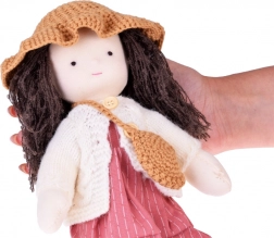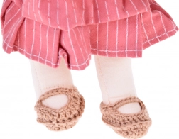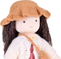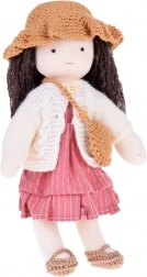 La bambola indossa tonalità rosa e beige: ha un vestito a righe, un cardigan lavorato a maglia, un cappellino, scarpine coordinate e una piccola borsetta. I lunghi capelli scuri e i dettagli curati conferiscono alla bambola un fascino unico. L'elegante scatola di cartone la rende un regalo perfetto per compleanni e Natale.
