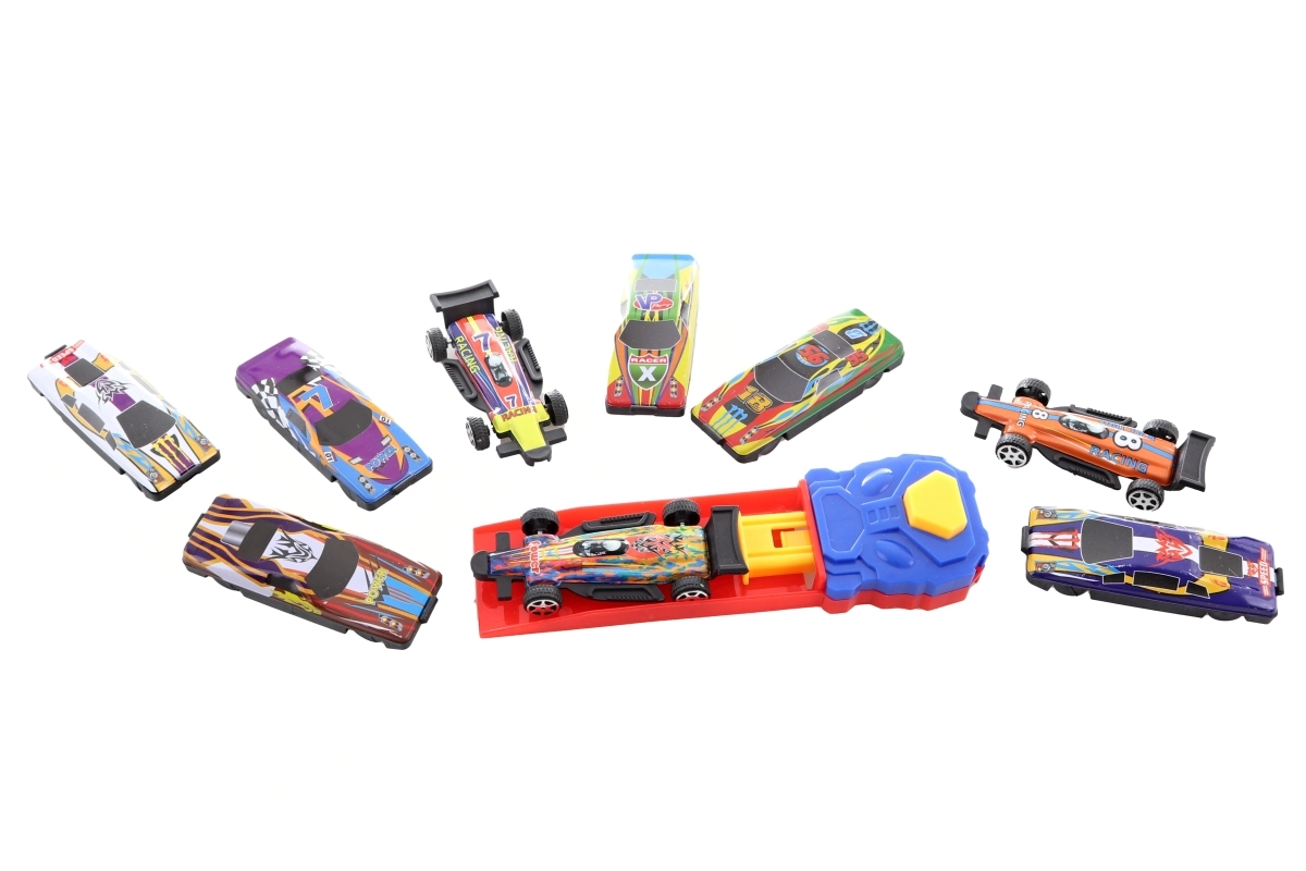 La confezione include 9 macchinine in metallo e una base di lancio, con cui creare facilmente scenari di gara avvincenti. Le dimensioni compatte sono ideali per giocare a casa e in viaggio.