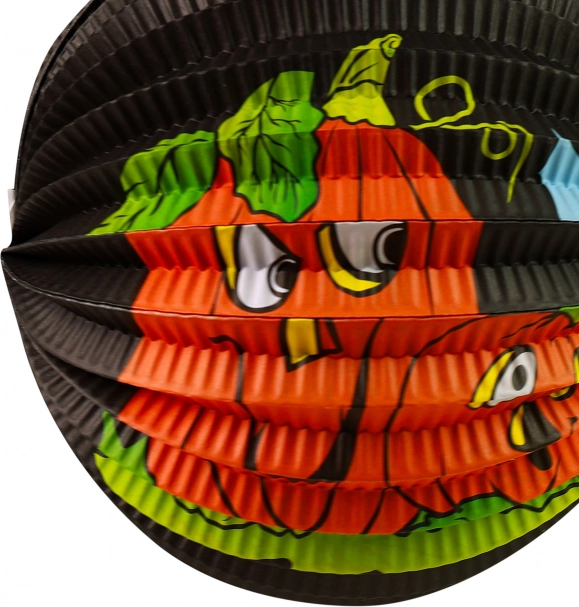 La elegante lanterna nera con motivi di zucche è una scelta perfetta per decorare interni e spazi coperti durante Halloween. Grazie alla leggera struttura in carta, si appende facilmente e crea un’atmosfera misteriosa con bagliore arancione.
