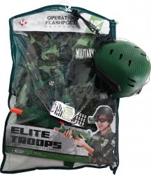 Il set include tutto il necessario per un gioco militare - giubbotto, elmetto, armi e altri accessori.