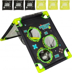 L'obiettivo del gioco è lanciare i sacchetti nei fori del tabellone, ognuno con un punteggio diverso, il che motiva i bambini a raggiungere nuovi record. Ideale per intrattenimento sia interno che esterno. Fornito in confezione di cartone.