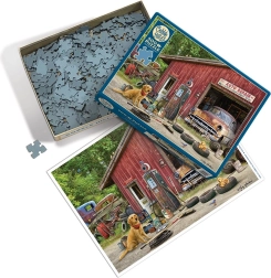 Il puzzle COBBLE HILL Officina auto propone un’affascinante scena vintage ricca di dettagli: un’auto d’epoca con un po’ di ruggine, un garage in legno, vecchi attrezzi e l’iconica pompa di benzina. Grazie alla fustellatura irregolare, bordi e angoli non sono sulla stessa asse, aumentando la difficoltà e il divertimento del montaggio e offrendo un’esperienza fresca anche ai puzzler esperti.