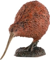 La superficie testurizzata imita il fitto “piumaggio” marrone ed evidenzia il lungo becco sottile tipico del kiwi di Owen.