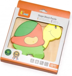 Migliora le abilità del tuo bambino con questo adorabile puzzle di legno. Progettato a forma di tartaruga con elementi verde chiaro e arancioni, questo prodotto stimola la costruzione creativa e l'immaginazione. Il giocattolo è posizionato su una base quadrata ed è un ottimo strumento per lo sviluppo della coordinazione occhio-mano.