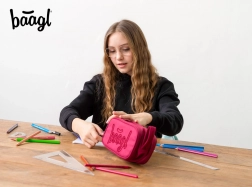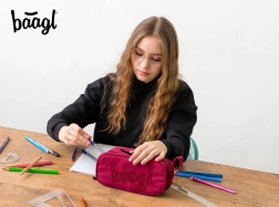 L'astuccio studentesco Baagl Ruby offre tre scomparti separati con cerniere di qualità YKK e un passante pratico per un facile aggancio.