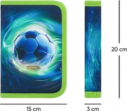 Pratico astuccio scolastico con un solo scomparto e due alette che offre un'organizzazione chiara del materiale da scrittura. Dispone di una cerniera di qualità, è senza contenuto e conquista con un design sportivo a tema calcio nei toni blu-verde.