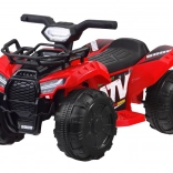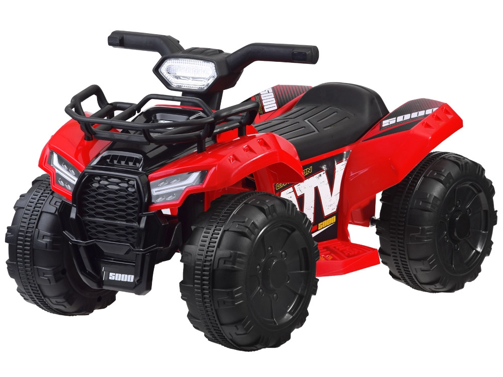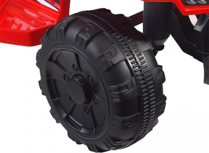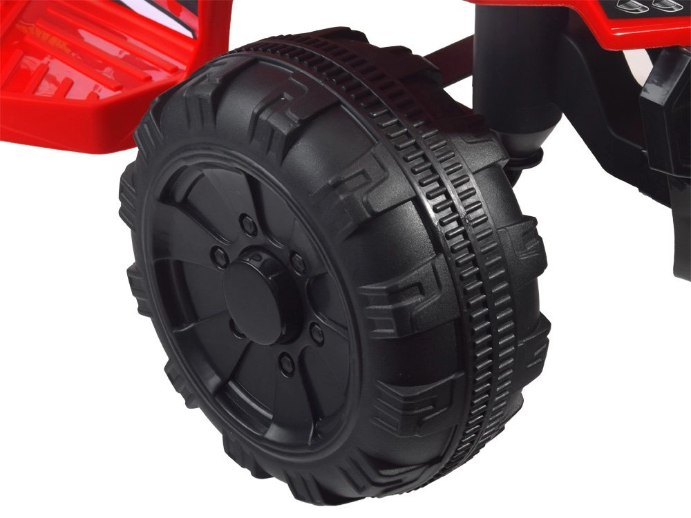 La struttura in plastica robusta, le grandi ruote e il sedile confortevole garantiscono comodità e stabilità. Il quad è alimentato da un motore da 6 V con batteria 6 V/4,5 Ah e dispone della marcia avanti, ideale per i principianti.