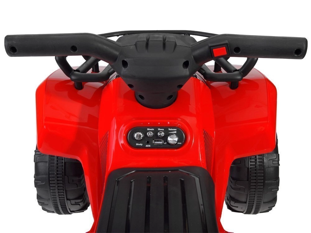 Questo quad sportivo per bambini è progettato per i più piccoli. Grazie alle dimensioni pratiche, è adatto alla guida su superfici piane sia in appartamento che all’aperto su marciapiedi e vialetti del parco. Il controllo è facile: il quad parte premendo il pulsante rosso sul manubrio; sul pannello trovi i comandi audio e il clacson.