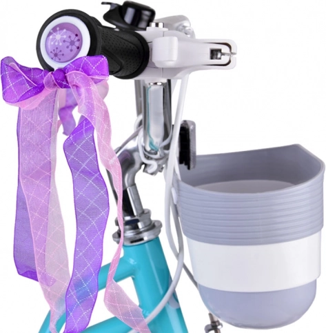 Cestino per piccoli oggetti, nastri e fiocchi sul manubrio e carter catena con motivo ad ala: uno stile che motiva a pedalare ogni giorno.