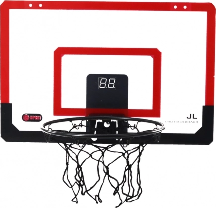 Nel pacco è incluso un pallone in gomma di 19 cm di diametro con una pompa manuale per un facile gonfiaggio. Il canestro è dotato di rete e contatore elettronico che registra ogni tiro riuscito. Gli effetti sonori dei tifosi e il applauso aggiungono attrattiva e motivazione al gioco.