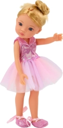 Questa bambola alta 33 cm è ideale per giocare e per scopi collezionistici. Ha lunghi capelli biondi stilisticamente raccolti in uno chignon, che corrisponde all'aspetto di una vera ballerina. È vestita con un abito rosa scintillante con una gonna vaporosa che brilla magnificamente alla luce. Inoltre, indossa scarpe rosa lucide che si adattano perfettamente al suo outfit da danza.