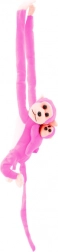 Una dolce scimmietta di peluche rosa con cucciolo lunga 70 cm è un morbido compagno per i bambini. Grazie agli arti lunghi con chiusura a strappo si appende facilmente al lettino o allo zaino. Il materiale soffice, il comfort nelle coccole e le certificazioni CE e EN71 la rendono un giocattolo sicuro e divertente per bambini dai 3 anni.