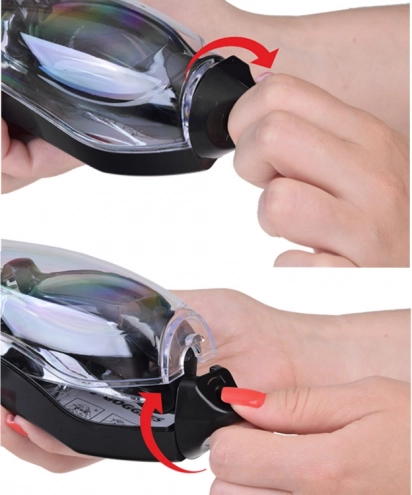 Gli occhialini sono confezionati in una custodia rigida in plastica, facile da aprire e chiudere grazie al meccanismo laterale rotante. Perfetta per l'archiviazione durante i viaggi, assicura che le lenti restino protette da graffi e altri danni.