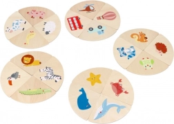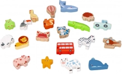 Forme in legno resistenti con animali, veicoli e oggetti motivano all’apprendimento e al gioco libero. I bordi lisci sono sicuri per le manine.