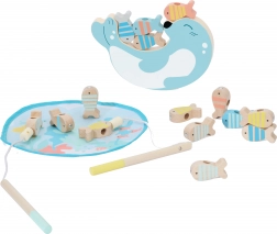 Due canne magnetiche e pesciolini variopinti con occhielli metallici allenano precisione e coordinazione occhio–mano. Chi pescherà più pesci dal “laghetto”?