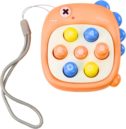 Il giocattolo tascabile Whack a Mole colpisce per il suo design allegro del dinosauro arancione e la facilità d’uso. È pensato per i più piccoli, che attraverso il gioco migliorano attenzione, riflessi e coordinazione motoria. L’obiettivo principale è premere il più velocemente possibile i pulsanti che appaiono casualmente sulla superficie del giocattolo.