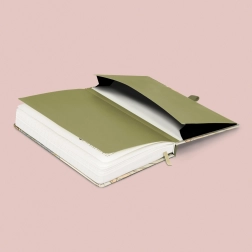 • Copertina rigida, elastico, passante per penna e tasca interna