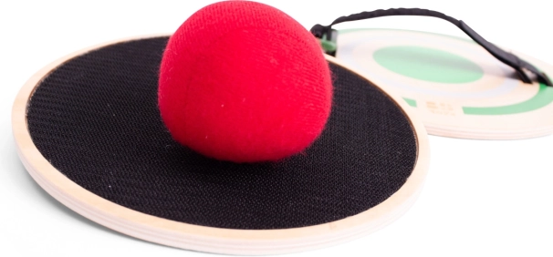 Gioco per 2 giocatori dai 4 anni. I bambini si lanciano una morbida pallina usando guantoni rotondi in legno con chiusura a strappo. La missione di questo gioco è permettere ai bambini di divertirsi senza smartphone e tablet.