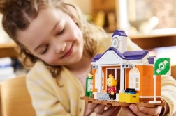 Grazie alle basi modulari e alle tessere extra per la bandiera personalizzata, i bambini cambiano facilmente il layout della scena e creano storie tutte loro. Inclusi anche un bancomat per scambiare ricompense e un cestino con nuove trovate. Nell'app LEGO Builder trovi istruzioni digitali e funzionalità aggiuntive per una costruzione più comoda.
