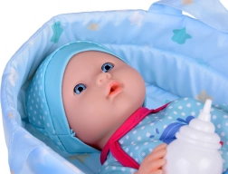 Questo set include tutto ciò che i piccoli genitori hanno bisogno per prendersi cura delle loro bambole - bambola con tratti realistici, marsupio per trasporto facile e biberon per nutrizione. La bambola ha occhi blu ed è vestita con un abito azzurro con motivo balena, che aggiunge autenticità al gioco di prendersi cura del bambino. Dopo aver bevuto dal biberon, la bambola può 'fare la pipì', il che la rende non solo un giocattolo, ma anche uno strumento divertente per insegnare ai piccoli bambini.