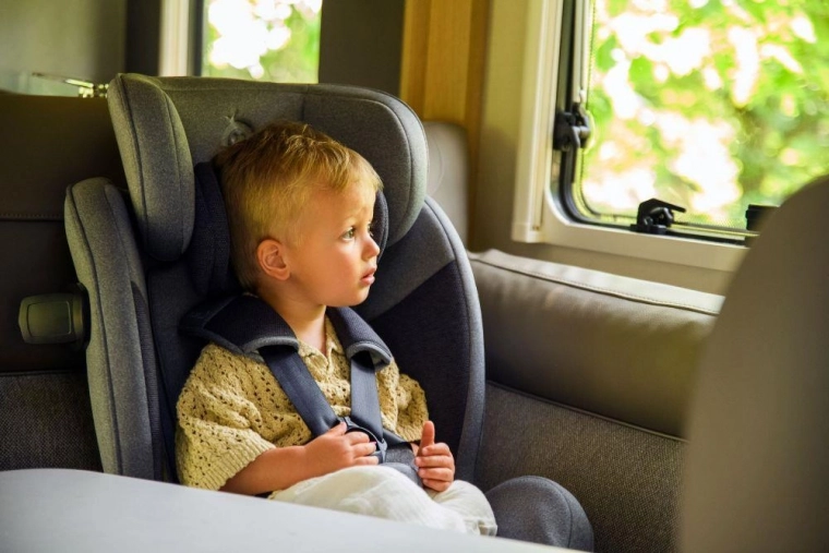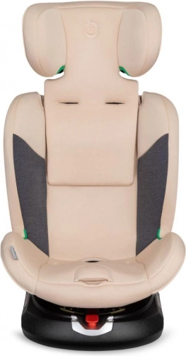 Una funzionalità unica del seggiolino è la base rotante, che consente una facile regolazione sia in direzione opposta al senso di marcia (RWF) che in senso di marcia (FWF). Il seggiolino è dotato di sistema ISOFIX con indicatore di corretta installazione e di una cinghia Tether per una maggiore sicurezza.