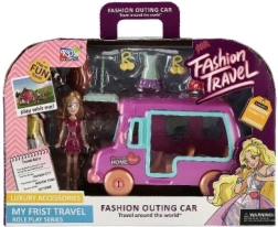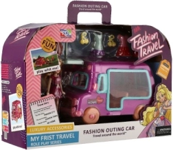 Giocattolo sotto forma di un'automobile rosa, ideale per trasportare le bambole alle sfilate di moda, stimola l'immaginazione e lo sviluppo di storie.