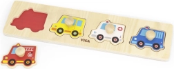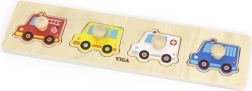 Scopri un divertente puzzle in legno a incastro per i più piccoli con tema veicoli di soccorso, che favorisce la motricità fine, la coordinazione mano–occhio e il riconoscimento di forme e veicoli. Grazie alle maniglie in legno, i pezzi sono facili da afferrare anche per le mani dei bambini. Giocattolo educativo ideale a partire da 12 mesi.