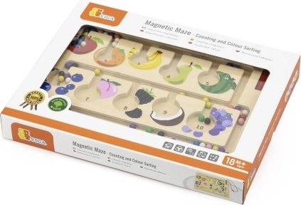 Gioco magnetico in legno divertente e sicuro per i più piccoli, in cui con una penna magnetica si spostano le palline nel labirinto. Sostiene la motricità fine, le capacità di coordinazione e insegna in modo giocoso i colori e le basi del conteggio. Ideale dai 18 mesi.