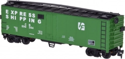 Il set include un carro chiuso “Express Shipping” e un carro pianale aperto con corrimano: ideali per creare scenari di carico realistici.