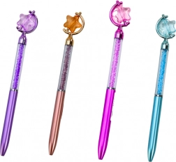 Elegante penna a sfera con stellina decorativa e piccoli “diamantini” scintillanti all’interno. Scrive con inchiostro blu e ha una punta da 0,7 mm per una scrittura fluida e precisa. Disponibile in mix di colori – viola, blu, rosa e oro. Perfetta per scuola, lavoro e come regalo.