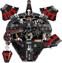 Entra nell’universo alternativo di STAR WARS con il cupo Falcone Oscuro Millennium. Il modello unisce le forme iconiche a una nuova estetica nero-rossa, interni ricchi e funzioni di gioco. I pannelli superiori apribili rivelano il trono di Darth Jar Jar, il centro di comando, l’iperguida, la zona relax e la cella.