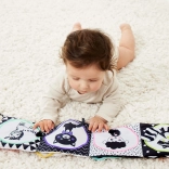 Il libro a doppia faccia offre due diverse esperienze visive grazie agli elementi ricamati e alle illustrazioni a contrasto degli animali. Le alette in peluche aggiungono un ulteriore dimensione di divertimento, frusciano al tatto e insegnano ai bambini nuove forme e colori.