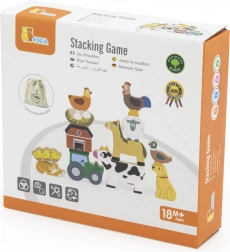 Questo set in legno contiene 12 pezzi a tema fattoria. Impilare gli animali uno sopra l’altro mantenendo l’equilibrio richiede molta pazienza, destrezza delle dita e motricità fine. I pezzi sono confezionati in un sacchetto di stoffa. Dimensioni della confezione ca. 16×15×4 cm. Dimensioni del sacchetto 18×18,5 cm. Età 18 mesi+