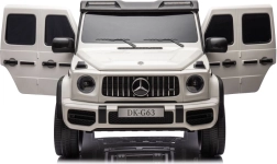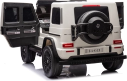Scopri il divertimento e lo stile con l'auto elettrica Mercedes G63 XXL in elegante bianco, alimentata da una potente batteria da 24V. Questo veicolo per bambini combina lusso e avventura, offrendo una guida sicura e piacevole.